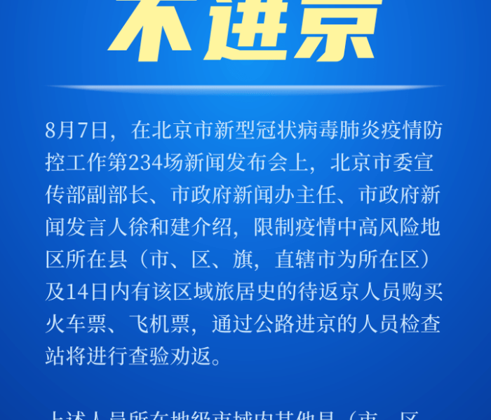 外地进京人员进京最新规定人员进京要求核酸检测:所有进京人员须持48小时内核酸检测阴性证明,抵京后24小时内须完成一次核酸检测。健康码:须通过“北京健康宝”查询并显示绿码,方可正常进京。限制人员:7天...