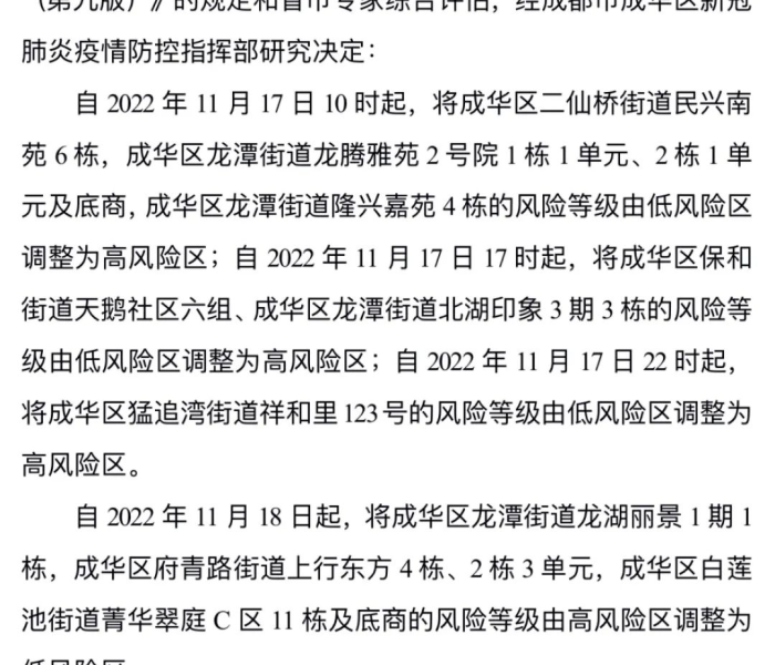 成都成华区一地调整为高风险地区,当地的疫情情况怎么样?(壹),精准管控新冠肺炎疫情联防联控机制和省市专家综合评估的要求,成都市成华区新冠肺炎疫情防控指挥部研究决定:自2021年11月9日起,成都市...